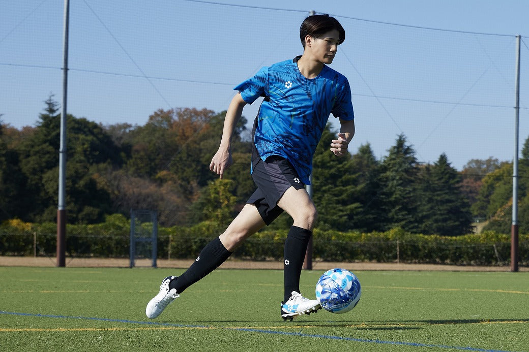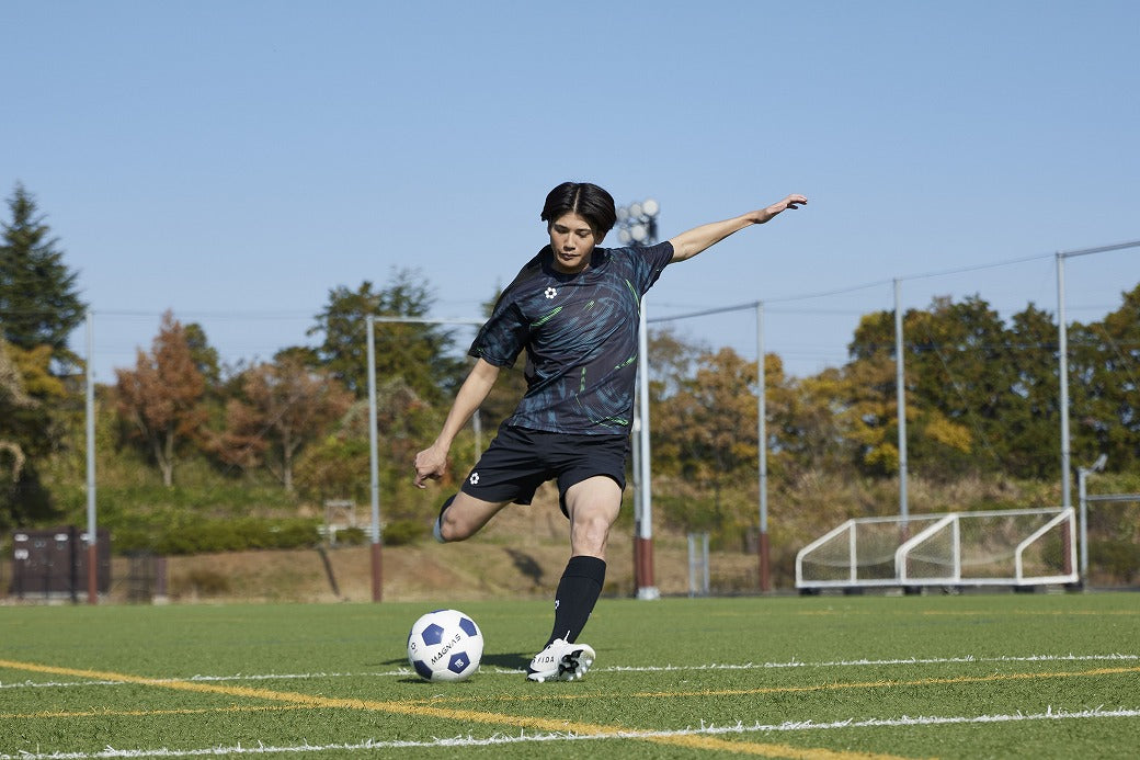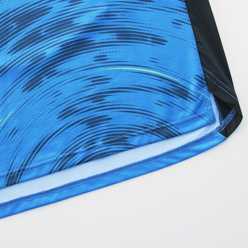 - 通気性と高いストレッチ性を兼ね備えたエアスルーメッシュ素材をサイドに配置し、且つ大胆なサイドスリットを施し、より激しいトレーニングをサポートします。