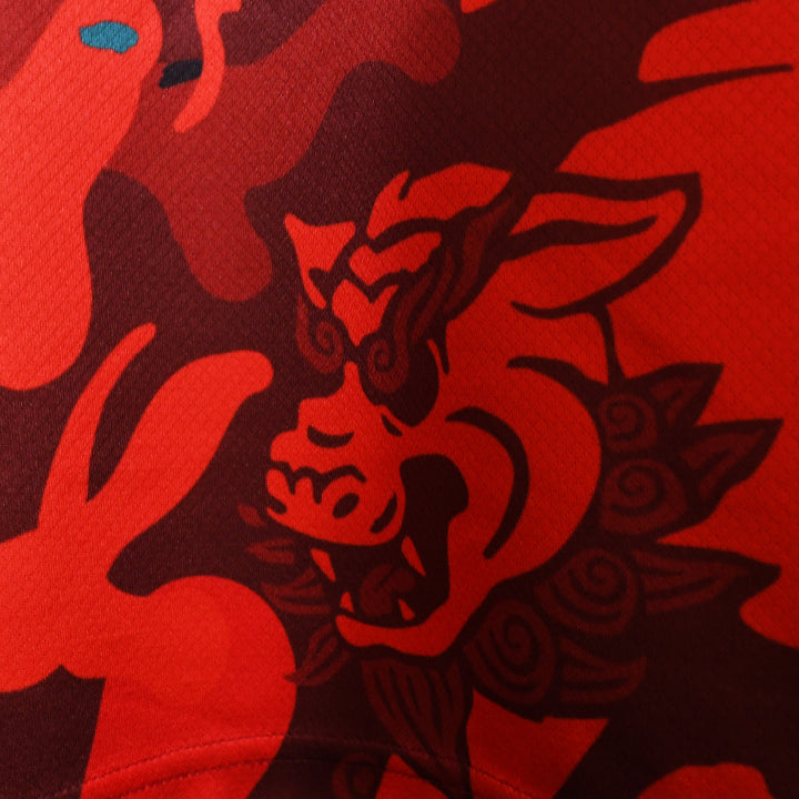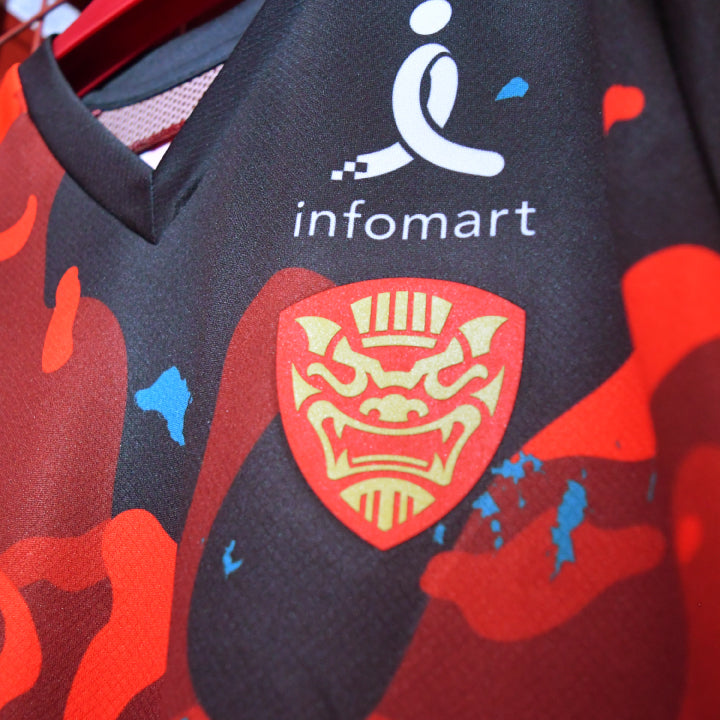 この大会を戦うユニフォームは、琉球の獅子(シーサー)がテキスタイルの中を縦横無尽に駆け回る姿をモチーフに、どんな相手にも立ち向かう強さと躍動感を表現しました。背中には沖縄本島を背負い、離島の島々を随所に配置。クラブが沖縄全体の想いを背負って戦う姿勢を示しています。