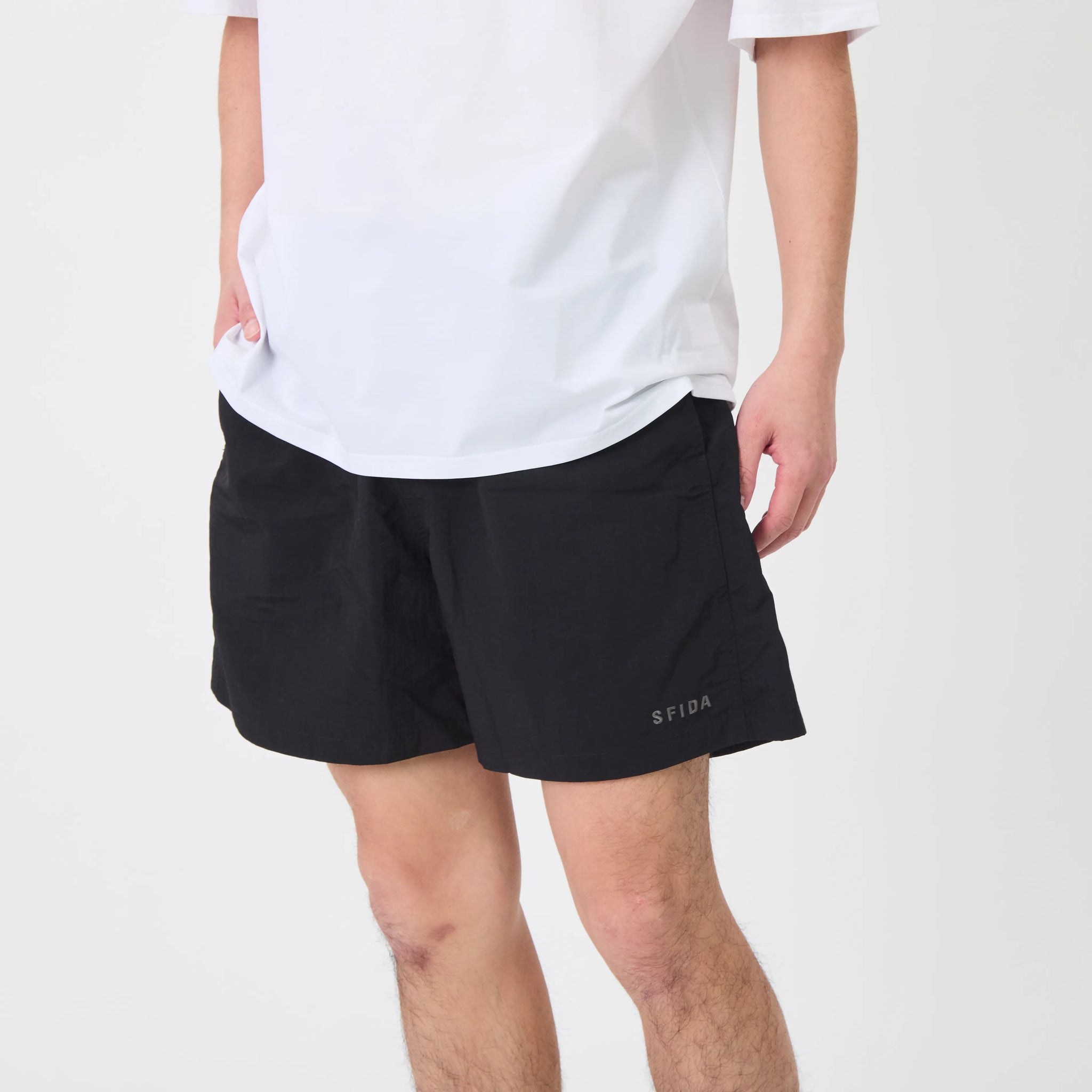 真夏のアクティビティを楽しむための、遊び心あふれる一着です。大胆なショート丈と、ゆったりとしたバギーシルエットが、トレンド感のあるスタイルを作ります。シャリ感のあるナイロン素材は肌離れが良く、水辺のアクティビティからフェス、タウンユースまで、夏のアソビを全力でサポートします。